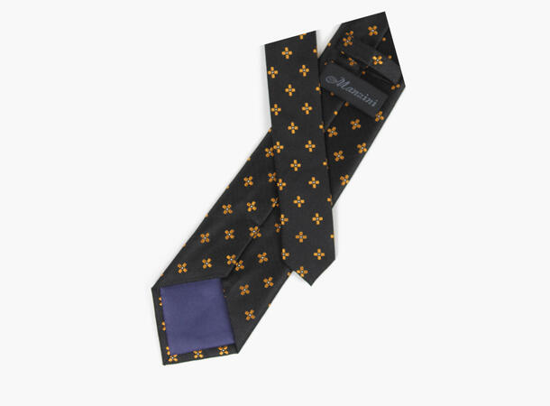 Kjøp Manzini sort silkeslips med oransje mønster i dag – for en sofistikert stil med karakter.