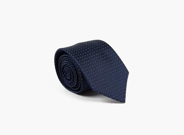 Montecristo 100 % silkeslips – Marineblå med diskré prikkemønster (bredde 7,6 cm)